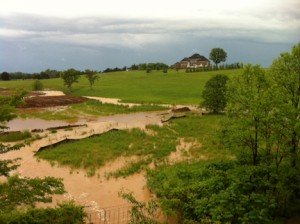 UPDATE, 6:30 P.M.: Below are three photographs of Lake Troilo taken this afternoon after a long day of heavy rain. If there wasn’t a major erosion problem before, there most assuredly is now. Shame on you, Joe McKinney, and shame on you, BSF board, for sitting on your hands and allowing this sort of desecration to happen without so much as making a peep about it. Resign. Now.