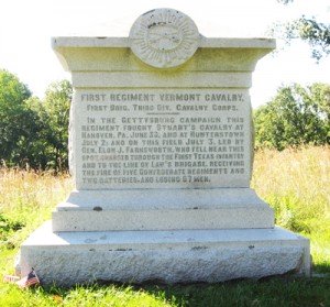 This photo is of the monument to the 1st Vermont Cavalry and sits near the spot where Elon J. Farnsworth was killed while leading the eponymous but unsuccessful charge on the afternoon of July 3, 1863.